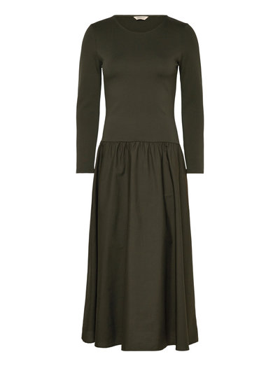 Denna midiklänning har en bekväm, smal passform och är ett enkelt val för vardagsbruk. Den elastiska midjan ger en smickrande silhuett. För bästa resultat, tvätta ut och in med liknande färger.