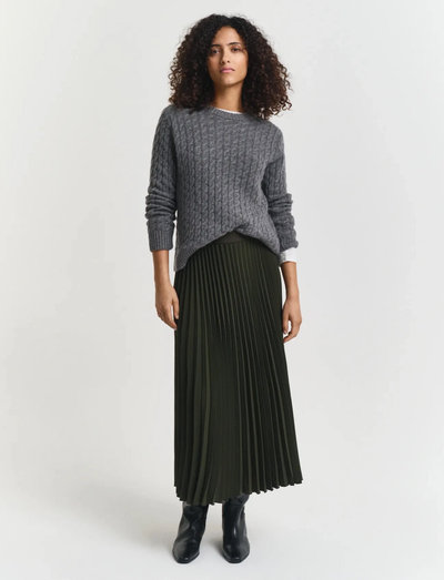 Den här midikjolen har en klassisk plisserad design. Det är ett mångsidigt plagg som kan klä upp eller ner. Kjolen är gjord av ett mjukt och bekvämt tyg.