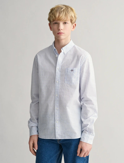 Denna skjorta har ett klassiskt gingham-mönster och ger en tidlös look. Den har en normal unisex-passform och är avslutad med en bröstficka och broderad grafik.