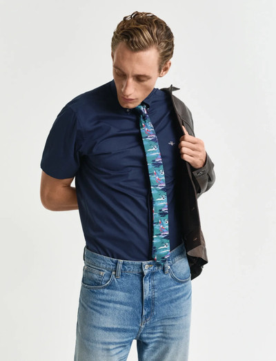 Button down-krageGant REG CLASSIC POPLIN SS SHIRT är en klassisk kortärmad skjorta tillverkad av högkvalitativ poplin. Den har en knapp-down krage, en bröstficka och en regular passform. Denna skjorta är perfekt för alla tillfällen, från avslappnade utflykter till mer formella evenemang.
