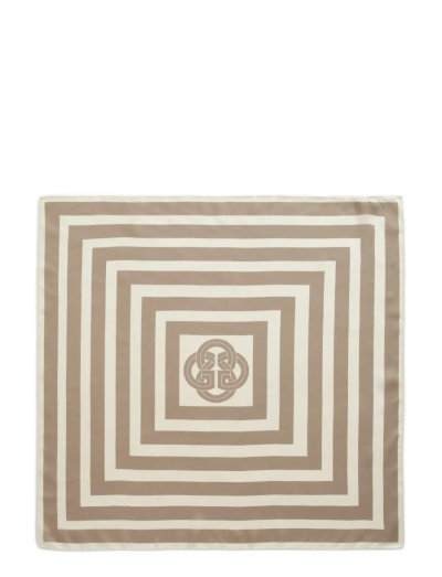 Denna scarf är tillverkad av lätt siden och har ett djärvt randtryck. Det mjuka tyget faller vackert och ger en touch av elegans till varje outfit. Ett centralt motiv fulländar designen.