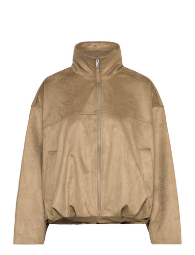 Denna jacka är tillverkad i mjukt fuskmocka och har en hög hals och dragkedja framtill. Bombersiluetten kompletteras av subtila paneler och en bekväm passform, vilket gör den till ett mångsidigt tillskott till varje garderob.