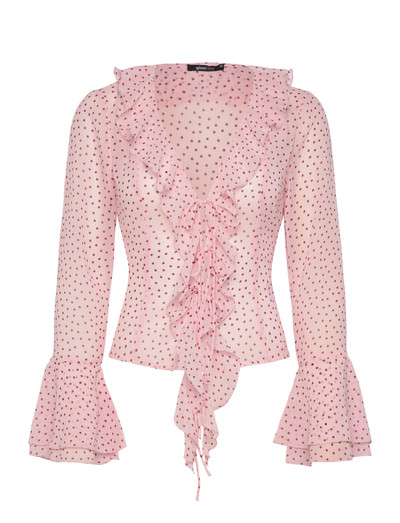 Delikata volanger pryder framsidan av denna långärmade blus och ger en romantisk känsla. Designen har en knytdetalj framtill och utsvängda manschetter som skapar en smickrande silhuett.