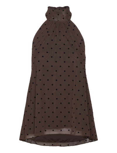 Denna ärmlösa topp har en hög halsringning och ger en sofistikerad silhuett. Den böljande designen säkerställer en bekväm passform, vilket gör den idealisk för både avslappnade och festliga tillfällen.