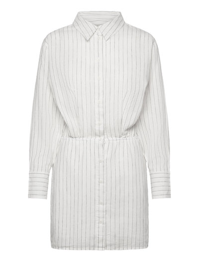 Denna skjortklänning är tillverkad i en lätt linneblandning och har en avslappnad men ändå raffinerad silhuett. Den har en klassisk knappstängning fram och en insydd midja för en smickrande form. De långa ärmarna och den kraglösa halsringningen bidrar till dess mångsidiga utseende.