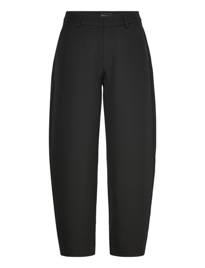 Dessa byxor erbjuder en modern silhuett med en medelhög midja och en distinkt barrel-formad benform. Designen innehåller klassiska skräddardetaljer som bälteshällor och sidfickor, vilket blandar komfort med en modern estetik.