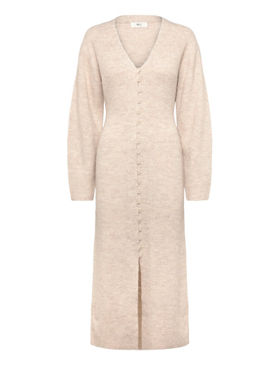 Med en knappstängning fram och långa ärmar erbjuder denna stickade klänning en mångsidig och bekväm passform. Den mjuka stickade konstruktionen och smickrande silhuetten gör den till ett stilfullt val för olika tillfällen.