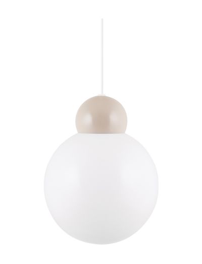 Ripley pendel med sitt moderna och lekfulla uttryck passar perfekt i den moderna inredningen. Lampan är tillverkad av metall och med en Glasskupa i opalvitt Glass, har en 120 cm lång vit textilkabel samt matchande takkopp gjord av metall, kronkoppling för takanslutning medföljer ej.