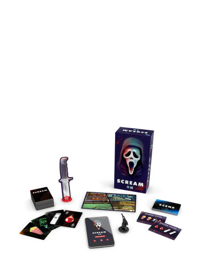 In this fast-paced cooperative game, players try to escape the murderer before time runs out. If Ghost Face calls you, you’re their next target! Move quickly and play cards to survive. Language: English. For 3–8 players. Ages 13+