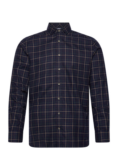 Denna rutiga skjorta är tillverkad i mjuk flanell och är perfekt för kyligare dagar. Designen har en broderad logga på bröstet och en Kent cutaway-krage.