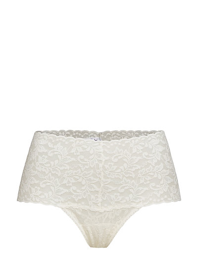Upplev drömlik komfort med denna stringtrosa med hög midja, designad med en bred linning för en säker och smickrande passform. Den fina spetsen ger en känsla av en kram, vilket gör den till ett idealiskt val för användning hela dagen.
