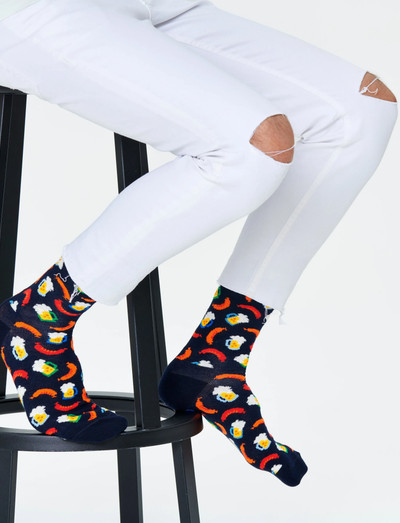 Beer And Sausage-strumpan blandar glada färger och busiga mönster i en design som skriker fest. Öl och korv i en kul kombo får både dig och dina fötter att le – och ja, folk kommer att lägga märke till dina strumpor. Styla dem till vad du vill, klä upp eller ner – men alltid med extra färg och Happy Socks-glädje.
