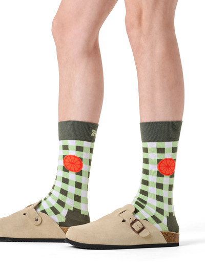 Ge stilen en vitamininjektion med våra Gingham Orange-strumpor! Klassiska gröna och vita rutor får sällskap av en kaxig orange detalj vid mudden – för att du älskar att sticka ut. Rutigt blir busigt och charmigt, och den pigga orangefärgen bjuder på en oväntad, modern twist. Vågar du vara annorlunda? Låt strumporna snacka åt dig!