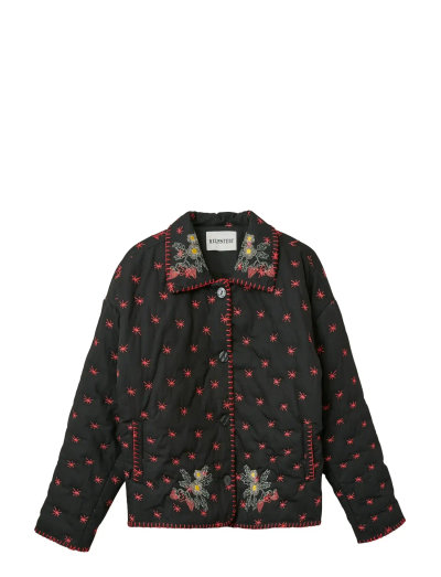 Denna bomullsjacka är detaljerad med signaturblom- och jordgubbsbroderi och erbjuder både en elegant look och en bekväm känsla. De handbroderade detaljerna längs kanterna och den matchande knappstängningen skapar en perfekt blandning av stil och funktionalitet, vilket gör den idealisk för alla tillfällen.