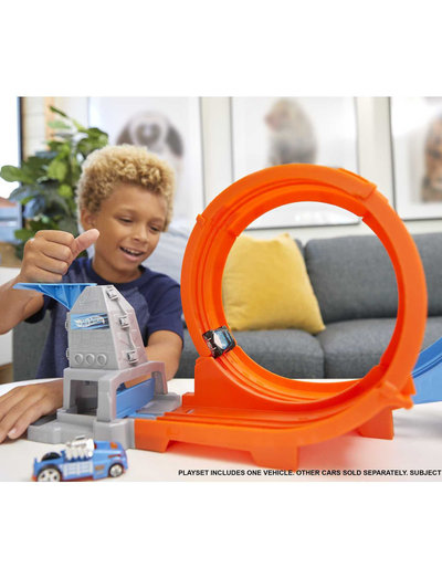 Hot Wheels Loop Stunt Champion är den ultimata tävlings- och stunthoppsleksaken med dubbel avfyrare, dubbelspårig loop, fjädrande ramp och justerbar landningsfålla. Barnen kan experimentera med kraft och teknik när de fyrar iväg sina Hot Wheels-bilar genom loopen och voltar mot landningsfållan. Utmanande lekar med en eller flera bilar (säljs separat). Avfyraren kan också skicka bilarna horisontellt in i loopen, så att de glider in i en vändning. Setet innehåller en Hot Wheels-bil i skala 1:64 och blir en utmärkt present till barn i åldern 4 till 6 år. Färger och dekorationer kan variera.