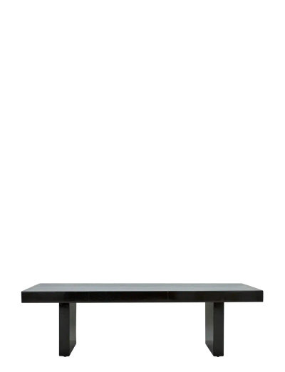 Detta soffbord i högglansig svart färg skapar omedelbart ett statement i vardagsrummet. De breda mangoträrutorna och de robusta benen förhöjer det handgjorda uttrycket och levererar en modern wow-känsla till din inredning.
