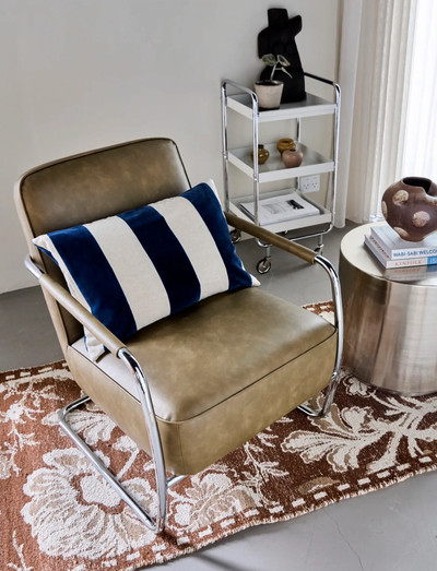 Ge din soffa eller fåtölj en stilren uppdatering med det här kuddfodralet som är vävt av bomull och lin. De breda ränderna i blått och sandfärg tillför en elegant touch till din inredning.