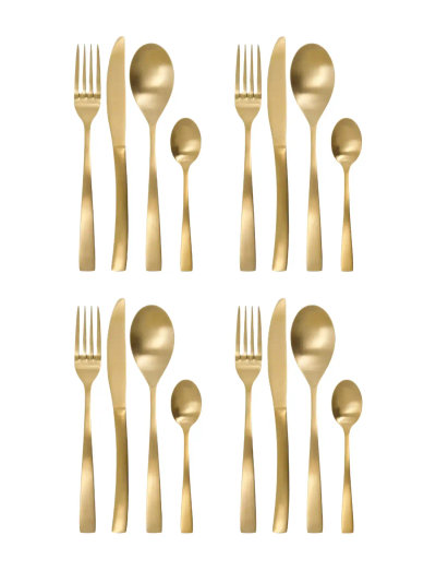 Lägg till en känsla av sofistikering på ditt matbord med detta vackert utformade bestickset. Tillverkat av hållbart rostfritt stål, har varje redskap en rik gyllene finish som ger elegans till både vardags och speciella tillfällen. Detta 16-delars set, inklusive knivar, gafflar, skedar och teskedar, säkerställer att du har alla nödvändigheter för en komplett matupplevelse. Varje del är utformad för att erbjuda både bekvämlighet och stil vilket gör dina måltider till en njutning.- Innehåller 16 delar.- Rostfritt stål med gyllene finish.- Lämplig för dagligt bruk.- Perfekt för speciella tillfällen.Tillför sofistikering till din middag med detta utsökta set.