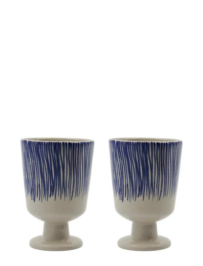 Med dessa två stengodskoppar får du en lekfull och personlig start på dagen. Handmålade blå ränder mot offwhite bakgrund ger varje kopp en unik charm och ett inbjudande uttryck. Använd kopparna till te, kaffe, varm choklad eller glögg och sprid både färg och värme vid frukostbordet, i mysiga soffhörn eller efter middagen. Kombinera gärna med andra stengodsserier för att skapa din egen personliga dukning.