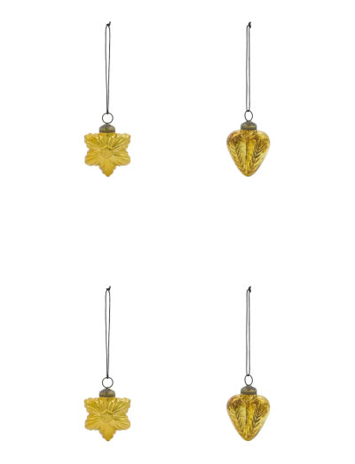 "Förbättra din julstämning med dessa vackra guldfärgade glasornament. Setet innehåller fyra handgjorda delar i två unika design: ett hjärta och en stjärna. Dessa ornament utstrålar nostalgi och värme som skapar en mysig atmosfär.- Handgjord unik design.- Elegant guldfärgat glas.- Hjärta och stjärna form.- Perfekt för juldekoration.Låt dessa ornament bli en tidlös del av din juldekoration och skapa magiska minnen."