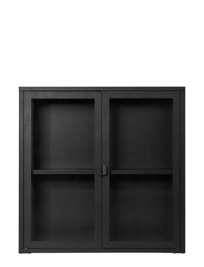Hängande vitrinskåp, 2 glasdörrar, stål, svart 80x18x80 cm