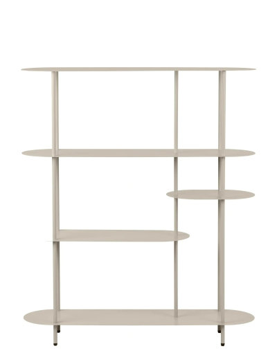 Shelving unit, 5 shelves, asymmetrical, metal, sand, 31x118x139 cm