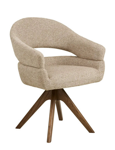 Dining chair with swivel, sand heathered, brown oak legs