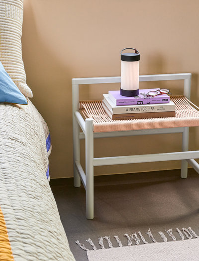 Ekbänk i natur FSC®-certifierat trä med offwhite vattentät papperssladd. Torka endast av papperssladden med en fuktig trasa.