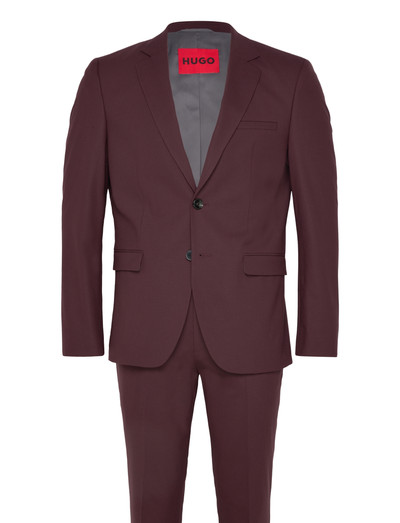 Denna kostym är skapad för en strömlinjeformad silhuett och har en nästlad design med extra smal passform. Kavajen är helfodrad och har hackade slag, fickor med lock, en bröstficka med passpoal och en tvåknäppning, medan byxorna har hake och dragkedja, sidfickor och en passpoalficka bak.