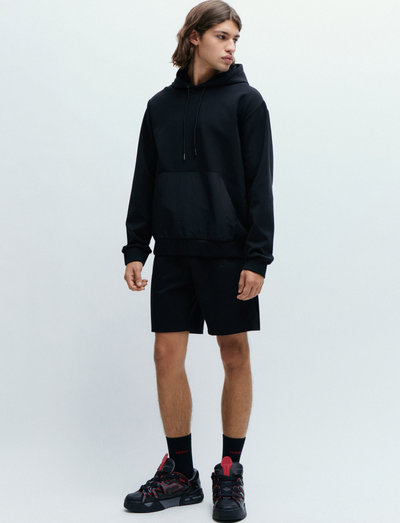 Denna långärmade huvtröja har en avslappnad passform och är tillverkad av två exklusiva material. Den har Intechno-tyg och en känguruficka i B-Fabric samt en dragsko med en pistolmetallfärgad stopper med staplad logotyp. Matcha den med Dolter-shortsen.