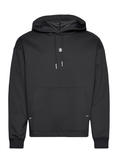 Denna hoodie med avslappnad passform är skapad för komfort och har en tvådelad huva och kängurufickor, vilket gör den perfekt för vardagsbruk. Interlock-tyget ger en mjuk känsla, medan ribbade muddar och metalldetaljer på snörena tillför en touch av elegans.