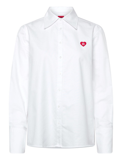Loose fitDenna långärmade skjorta är tillverkad av ekologisk bomull med en oxfordstruktur och har en oversized passform och en herrinspirerad, större krage. Ett rött hjärtmärke ger en signaturtouch på bröstet.
