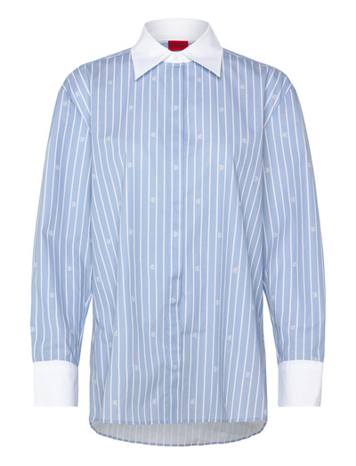 Oversized fitDenna långärmade skjorta är tillverkad av ren bomull och har en oversized passform inspirerad av herrmode. Den tvåfärgade logotyp-pinstripen ger en subtil varumärkeskänsla, medan den kontrasterande vita kragen och manschetterna ger en skarp och ren finish.