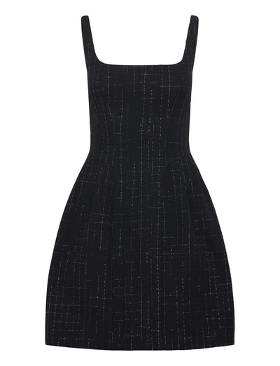 Denna klänning är strukturerad för en smickrande silhuett och har en fyrkantig halsringning och en subtilt texturerad finish. Den figursydda överdelen övergår mjukt i en kort kjol, vilket gör den idealisk för kvällsevenemang.