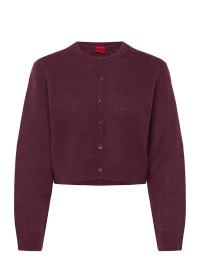 Denna feminina kofta är tillverkad i en mjuk alpackablandning och har en klassisk rund hals och långa ärmar. En tonal, staplad logotypbrodyr sitter diskret ovanför fållen på vänster sida, vilket ger en touch av diskret branding.