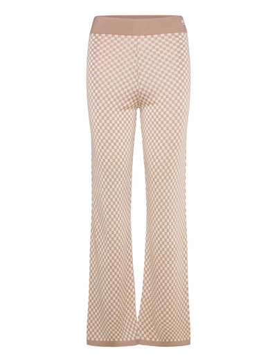 Dessa utsvängda byxor har ett subtilt rutmönster och en stilren silhuett. Den vida benmodellen ger en bekväm passform, vilket gör dem till ett mångsidigt tillskott i varje garderob.