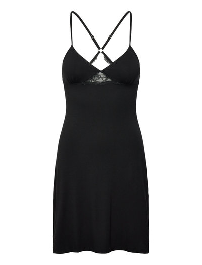 Denna supermjuka slipklänning är designad för komfort och lockelse. Fina spetsdetaljer pryder ryggen och under bysten, vilket ger en touch av elegans. Perfekt för avkoppling, och den passar vackert med en lätt kimono.