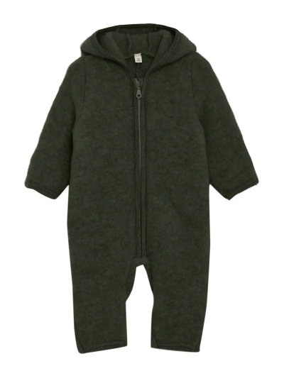 Smart and warm HUTTEliHUT pram suit in wool fleece. The HUTTEliHUT pram suit has a fixed hood with a round head shape with small cute ears. The pramsuit has long sleeves and legs with practical folds up to size 80, to keep little feet and hands warm. It has ribbed edges at all openings. It opens at the front with a hidden zipper with chin protection. The pram suit is made in Merino wool. Certified acc. to OEKO-TEX® STANDARD 100 Cert. No. 2276-364 DTI This product is made from Merino wool, and it is WOOLMARK – Pure New Wool certified under license nm: 0030001353 by THE WOOLMARK COMPANY. This product is made of wool, known for its durability if cared properly: Wash it only when necessary. Select a gentle wool detergent. Do not use fabric softener. Always choose the gentle wool machine-wash cycle, turning the garment inside out. Use a low spin cycle. Reshape while wet. For hand washing, use lukewarm water and avoid wringing, gently press with a towel to remove excess water. Lay flat on a towel to dry - do not place on a radiator or in a tumble dryer.