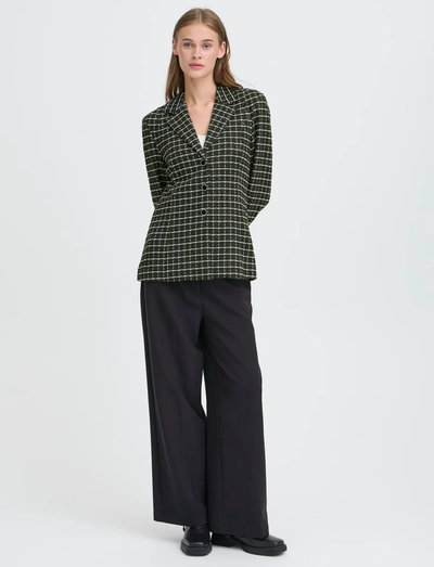Denna enkelknäppta kavaj definieras av en strukturerad skärning som ger en sofistikerad silhuett. Kavajen har ett klassiskt hackrevers och stängs med tre knappar, vilket gör den till ett mångsidigt tillskott till varje garderob.