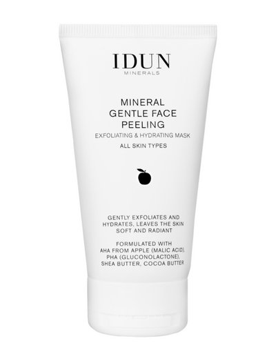 Gently exfoliating and hydrating, leaving the skin soft and radiant. IDUN Minerals Mineral Gentle Face Peeling boasts a soft creamy vegan texture infused with AHA from apple (malic acid), PHA (glucono delta-lactone) for delicate removal of dead skin cells and enriched with caring canola oil, shea and cocoa butter for a nourishing and softening effect on skin.