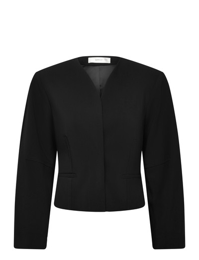 Denna croppade kavaj har en modern silhuett, vilket gör den till ett mångsidigt tillskott i din garderob. De rena linjerna och den minimalistiska designen gör att den enkelt kan kombineras med både avslappnad och formell klädsel. Den har diskreta framfickor och en elegant, kraglös halsringning.