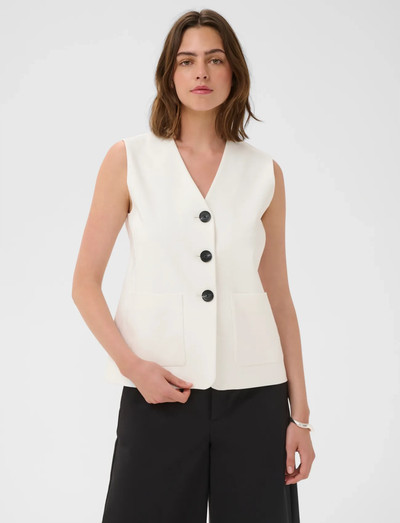 Denna väst är ett smart alternativ till en klassisk kavaj och har en skräddarsydd silhuett. Den ärmlösa designen har en V-ringning och knäppning framtill, vilket gör den till ett mångsidigt lagerplagg.