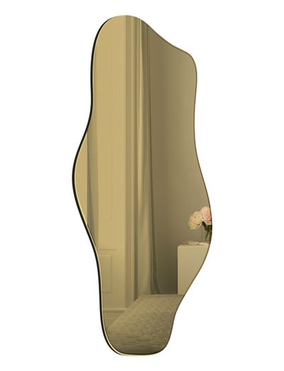 Organisk spegel i klarglas, i minimalistisk design. spegelns kant är avfasad, vilket ger ett elegant utseende. spegeln kan hängas på båda lederna och passar in i alla rum