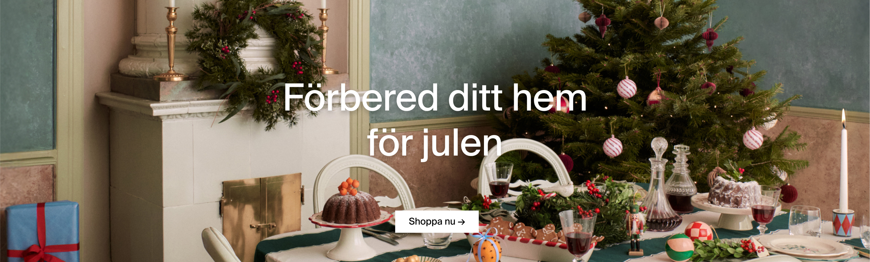 Upptäck allt du behöver för att fira säsongen med stil. Allt från gnistrande ljus och festliga dekorationer till mysiga textilier, julbordstillbehör och bakningsredskap – hitta de perfekta detaljerna för att fylla ditt hem med värme och glädje.