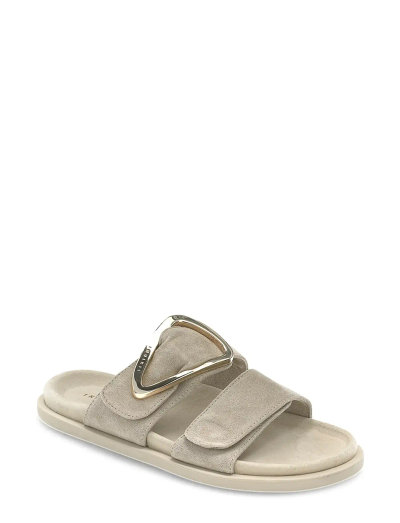 Dessa sandaler har ett djärvt, geometriskt spänne som ger en distinkt touch. Designen har justerbara remmar för en anpassad passform och en bekväm, formad fotbädd.