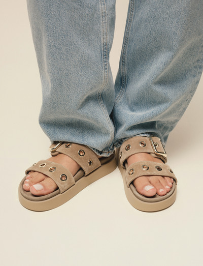 Dessa sandaler har en platå-sula som ger ett diskret lyft. Designen har justerbara spännen som säkerställer en säker och anpassningsbar passform. Metallfärgade öljetter ger en detaljerad touch till ovandelen.
