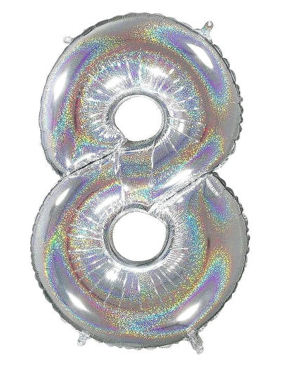 Sifferfolieballong 8 hologram silver 70 cm - Barnkalas