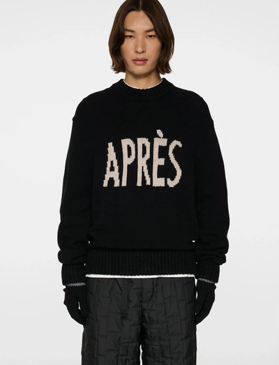 Den här stickade tröjan i tjock ull gör ett intryck med en djärv intarsia-text över bröstet. Ribbade kanter ger en bekväm passform. En omvänd Bridge-logga i nacken ger en diskret detalj.