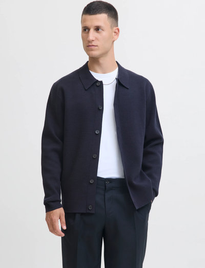 Denna flatstickade cardigan kombinerar komfort och flexibilitet och är ett mångsidigt tillskott till varje garderob. Den har långa ärmar med nedhasad axel, en polokrage och knappstängning. Den avslappnade passformen säkerställer en bekväm och stilren look.