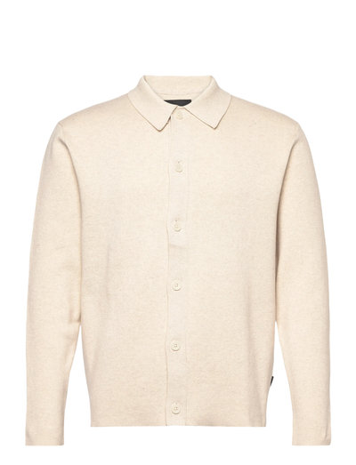 Denna flatstickade cardigan kombinerar komfort och flexibilitet och är ett mångsidigt tillskott till varje garderob. Den har långa ärmar med nedhasad axel, en polokrage och knappstängning. Den avslappnade passformen säkerställer en bekväm och stilren look.